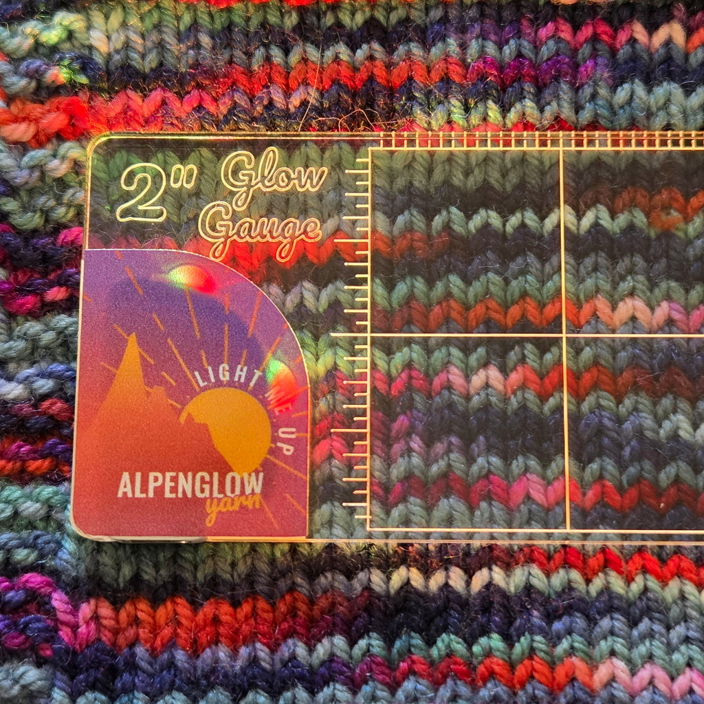 This light-up gauge makes counting stitches so much easier! The crosshairs at 1 inch help you keep track of your count as you move across your stitches. It can be set to one of 10 different colors or a slow color-shifting mode if you just can't decide. The whole gauge is 2 inches, just multiple by 2 to get your gauge over 4 inches. At about the size of a credit card and 1/4" thick, it's convenient to throw into any project bag. It comes with a small velvet bag to protect it from scratches, and can be recharged with any USB charger and USB-C cable (not included).