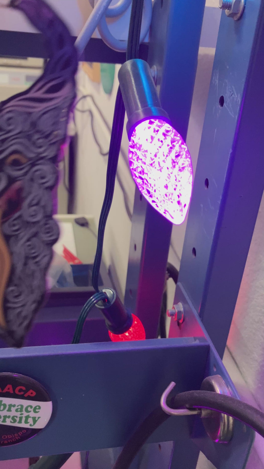 These are ready-to-hang creepy Krampuses!  We've assembled these in our shop in San Luis Obispo.  They're pre-loaded with glowing/flashing software which lights up the eyes and the tongue with red backlit LEDs.  They come with rings and a chain, ready to hang anywhere!  A CR2032 battery is included.