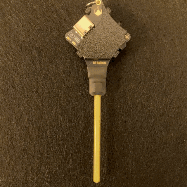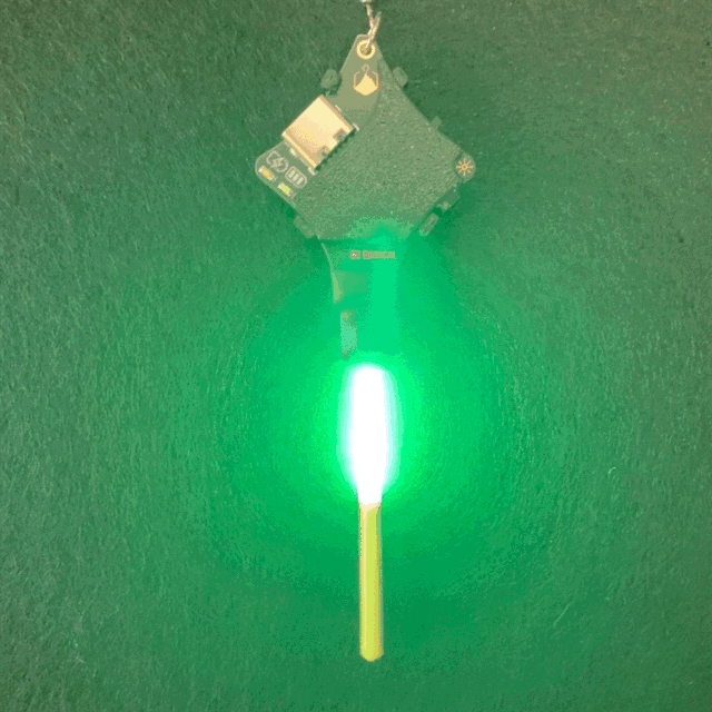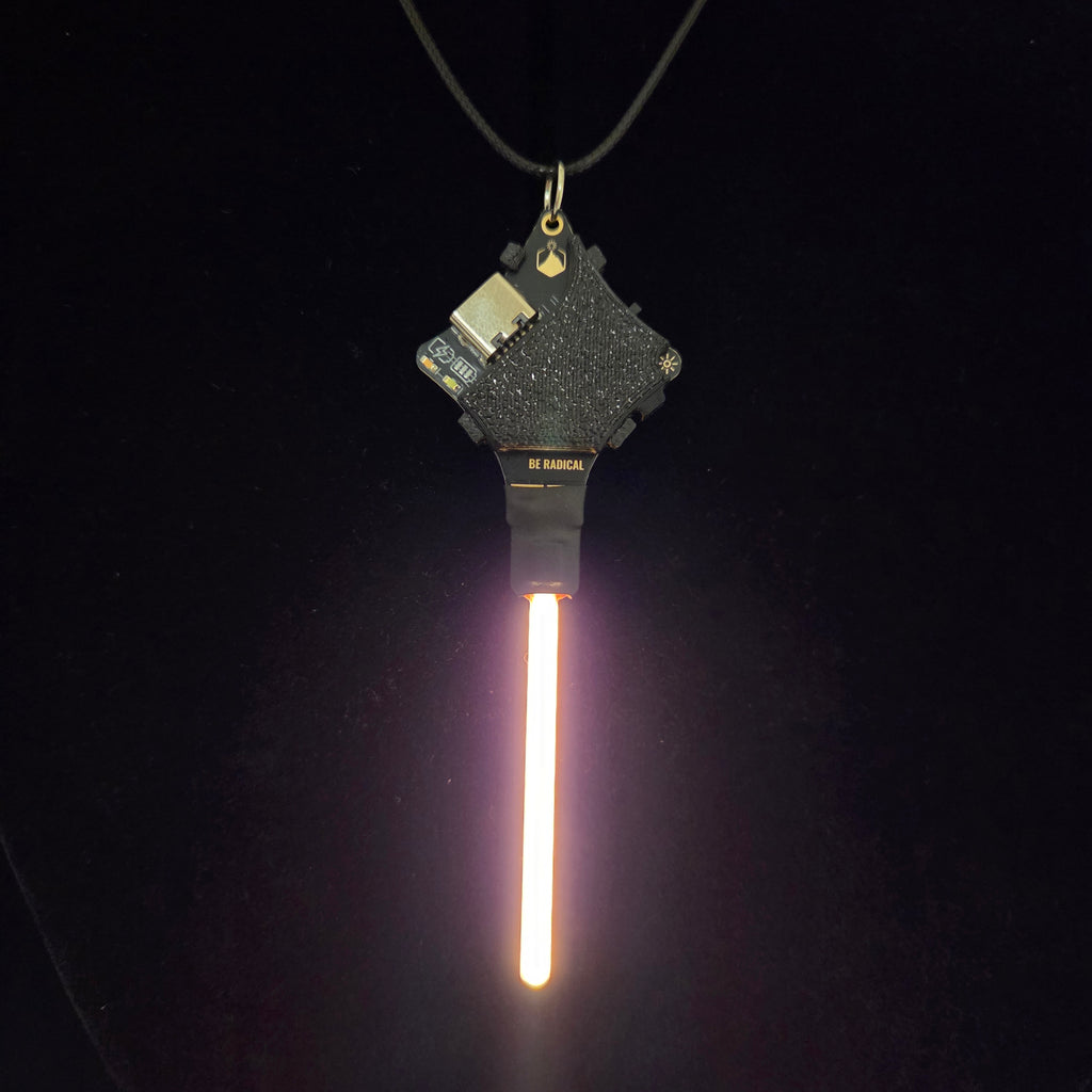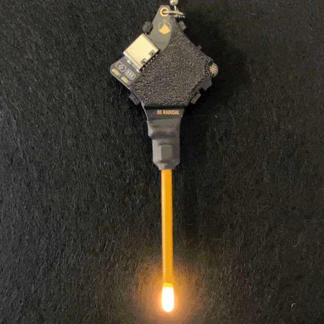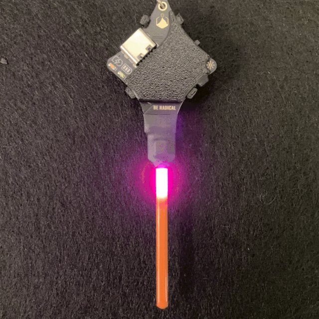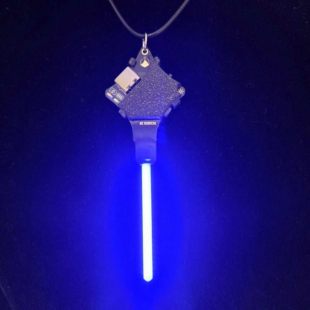 This fun Glowie drips with light! It has two modes - an animated raindrop mode is activated when you first turn it on, and if you turn it on and off again, it will light up solid and look like a saber of light! Keep power-cycling to switch between the two modes. If left off for a while, it'll start up in raindrop mode.